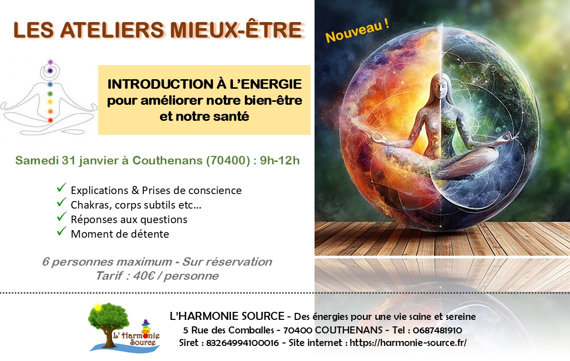 - Thème : Mieux comprendre comment l’énergie en nous est à l’origine de notre santé et de notre bien-être