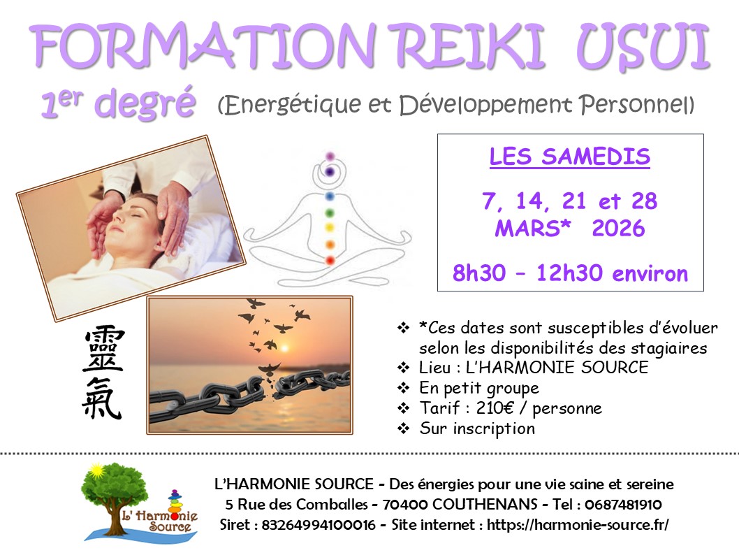 - Et depuis mars 2021 : Stage (Enseignement et Initiations) REIKI USUI 2èmedegré