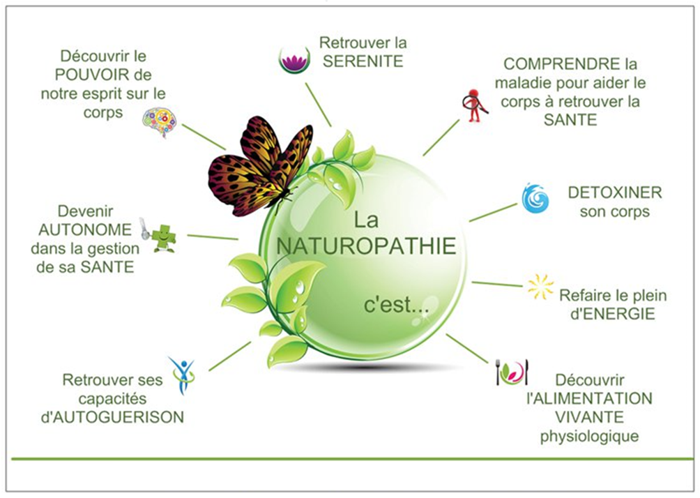 En réalité, toutes les techniques que j’utilise sont de la NATUROPATHIE qui désigne dix familles de techniques d’entretien et retour à la SANTE au naturel (et de nombreuses sous-familles). Voir également le sous-menu Naturopathie ci-dessous.